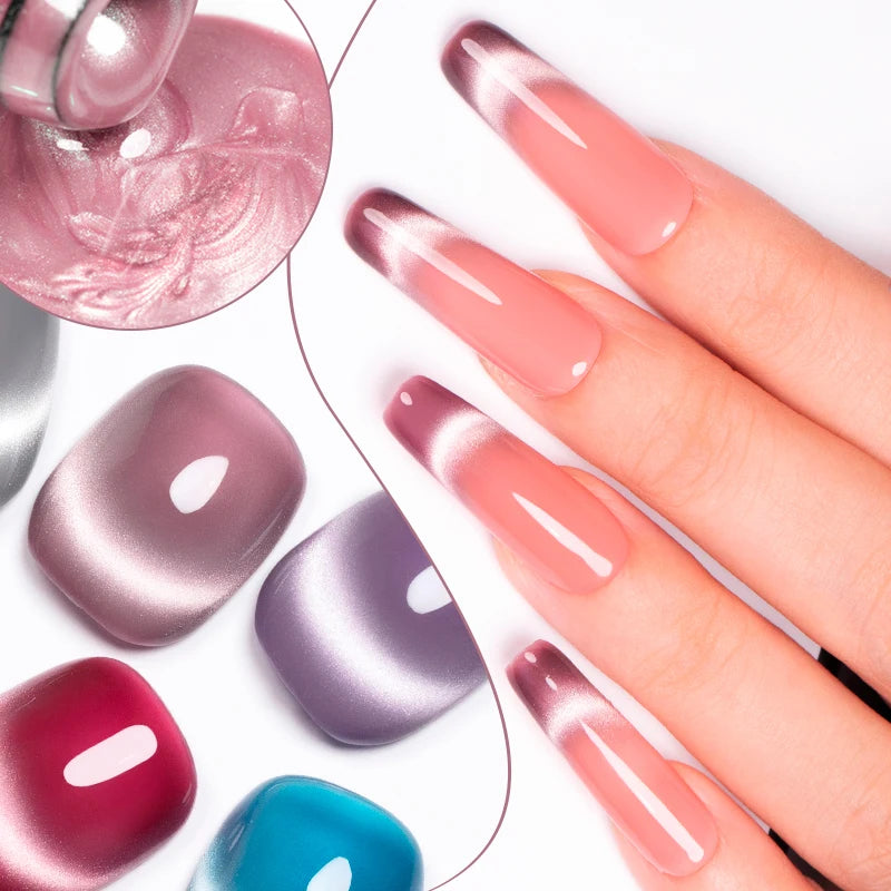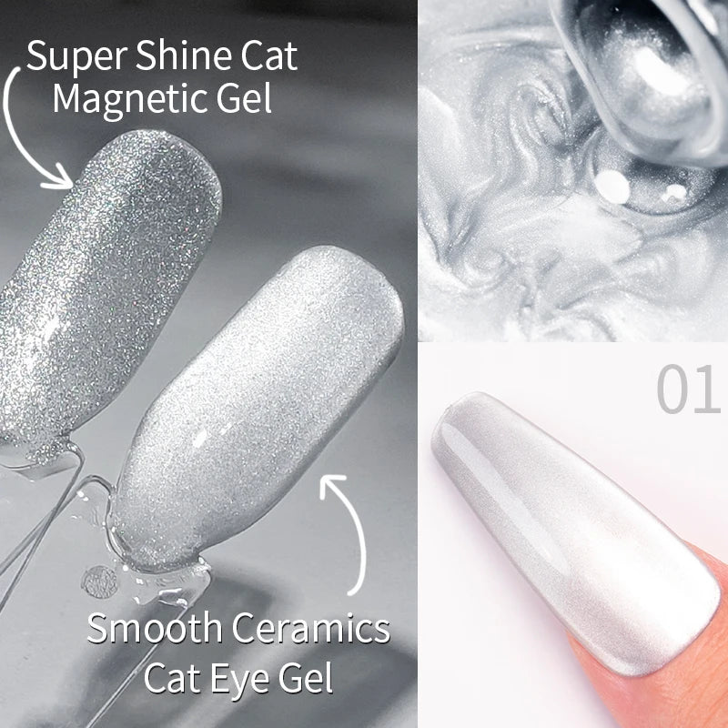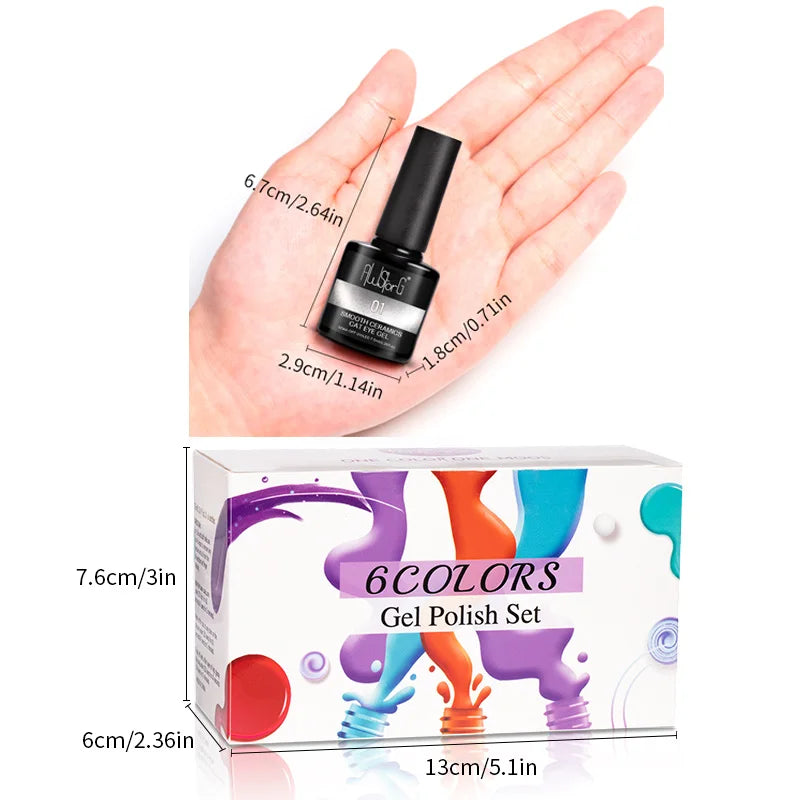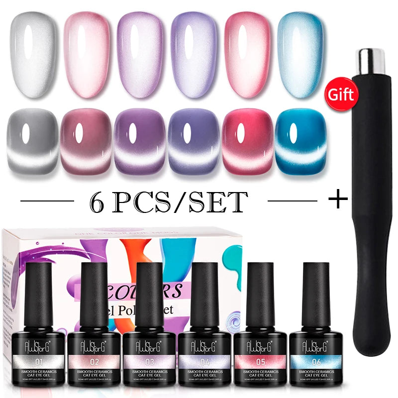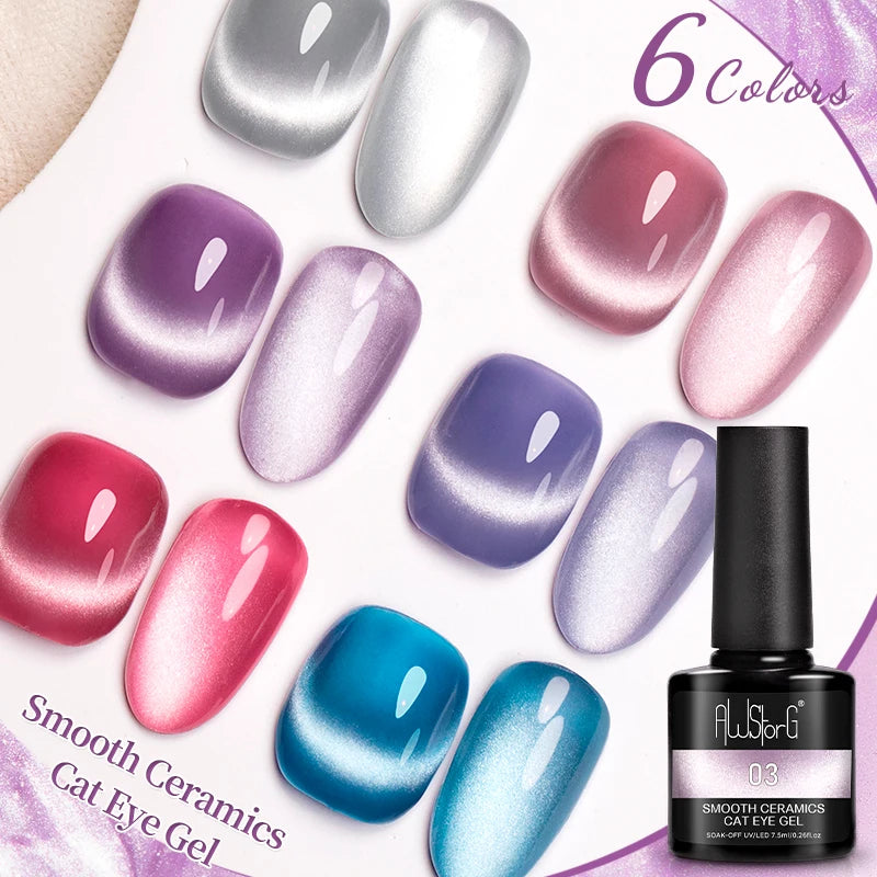 AWStorG 6Pcs/Set 7.5ML Smooth Ceramics Cat Eye Gel Sparkling Glitter Moonlight Cat Effect Semi Permanent Magnetic Gel Nail Art